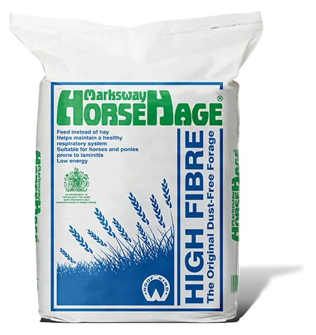 HorseHage High Fibre (Blue) is a high fibre, low protein forage for horses and ponies in work and at rest, as well as those convalescing and veterans. It is a mix of rye grasses that is dust free with a sweet-selling aroma, with low starch and sugar levels.